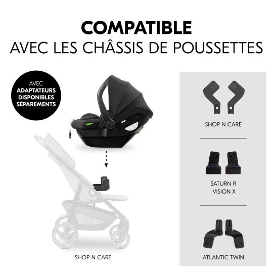 Avec la Coque Drive N Care dès sa naissance et aux enfants mesurant 40 à 87 cm.