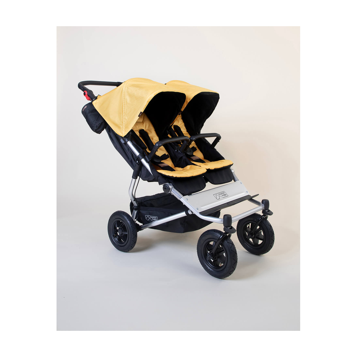 La poussette double Mountain Buggy V4 Duet™ est la solution ultime pour les familles actives : maniable comme une simple, robuste comme une tout-terrain, et prête à vous accompagner de la naissance à 4 ans (≈ 18 kg par assise). Grâce à sa largeur compacte et son châssis en aluminium léger, elle traverse portes, trottoirs et sentiers avec une agilité remarquable.