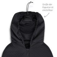 La capuche peut être ajustée à l'aide d'un cordon et protège ainsi du froid la tête particulièrement sensible de votre bébé.
