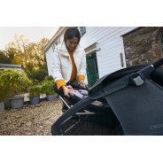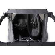 Pliable, utilisée comme coque de transport. Position allongée réglable. Matériau Climatex® qui régule la température, harnais de sécurité à 5 points.