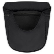 La couverture est simplement fixée à la barre de protection à l'aide de deux boutons-pression et est également maintenue en place par le repose-pied.