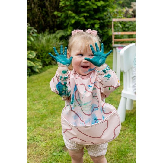 - Pratique et évolutif : le bavoir tablier est imperméable, se lave à 30° et se glisse facilement dans un sac pour les repas à l’extérieur ou les activités créatives.