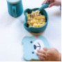 Le silicone est une matière naturellement hygiénique, facile à nettoyer et extrêmement résistante. Ce set passe au lave-vaisselle, au micro-ondes, au four (hors couvercle jusqu’à 190 °C) et au congélateur (jusqu’à -40 °C). Il peut accueillir tous types d’aliments : purées, compotes, soupes, céréales, fruits, pâtes et bien plus encore.