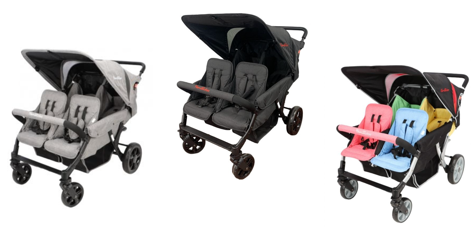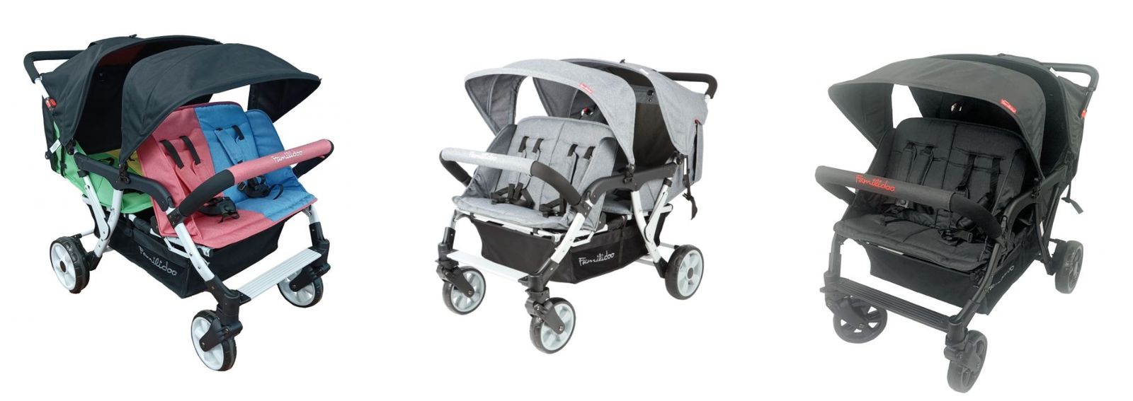 Les poussettes Familidoo 4 places, triples et quadruples