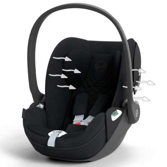Au cours de sa première année de vie, votre enfant grandit rapidement. Pour que vous puissiez toujours prendre la route ensemble en toute sécurité, Cybex a veillé à ce que le Cloud T s'adapte facilement à cette évolution rapide. Par exemple, le siège-auto est équipé d'un appui-tête réglable sur 12 positions. Les ceintures de sécurité sont réglées simultanément, ce qui garantit que bébé est toujours correctement et solidement attaché à chaque étape de sa jeune vie. Il est également doté d'un insert amovible pour nouveau-né afin de garantir un ajustement parfait dès le premier jour. Vous pouvez utiliser le coussin réducteur jusqu'à ce que votre enfant atteigne 60 centimètres.