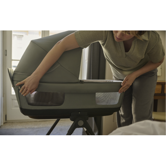 Le support est conçu pour accueillir la nacelle Electa, la transformant en un lit d’appoint pratique pour votre bébé.