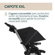 Ultra légère avec seulement 3,5 kg, offre à bébé un véritable cocon dès la naissance. Facile à transporter grâce à sa poignée intégrée, elle est compacte et simple à ranger. Sa grande capote résistante à l’eau avec protection UV50+ protège efficacement bébé, tandis que la fenêtre en maille permet de garder un contact visuel permanent. La housse 2-en-1 se transforme en couverture pour les jambes sur la poussette, idéale en toute saison.