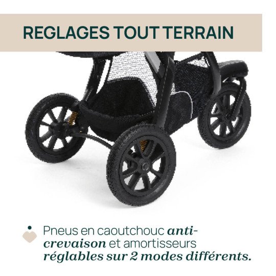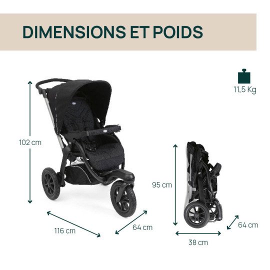 Pensé pour les chemins, les parcs, les trottoirs irréguliers et les escapades en plein air, le Trio Activ3 combine robustesse, confort et sécurité, tout en restant pratique au quotidien. Un seul ensemble pour tout faire : promener, transporter, protéger… et profiter.
