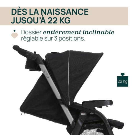 Ce système 3-en-1 réunit tout le nécessaire pour accompagner votre enfant de la naissance à la petite enfance, aussi bien en promenade qu’en voiture.