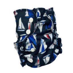 Une seule taille qui convient à la plupart des bébés de la naissance à la continence, grâce à notre système évolutif : des rangées de pressions sur le devant du maillot permettent de moduler la taille de 2.8 kg à 16 kg.