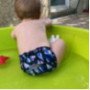 Contrairement aux maillots couches jetables, le maillot-couche taille unique lavable Applecheeks ne laisse pas passer les selles dans les piscines.