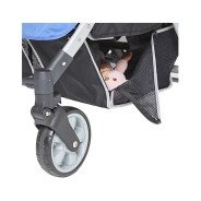 Grandes roues tout-terrain, capote intégrale, panier XXL et habillage pluie inclus : elle a tout d’une grande… en version multiple !