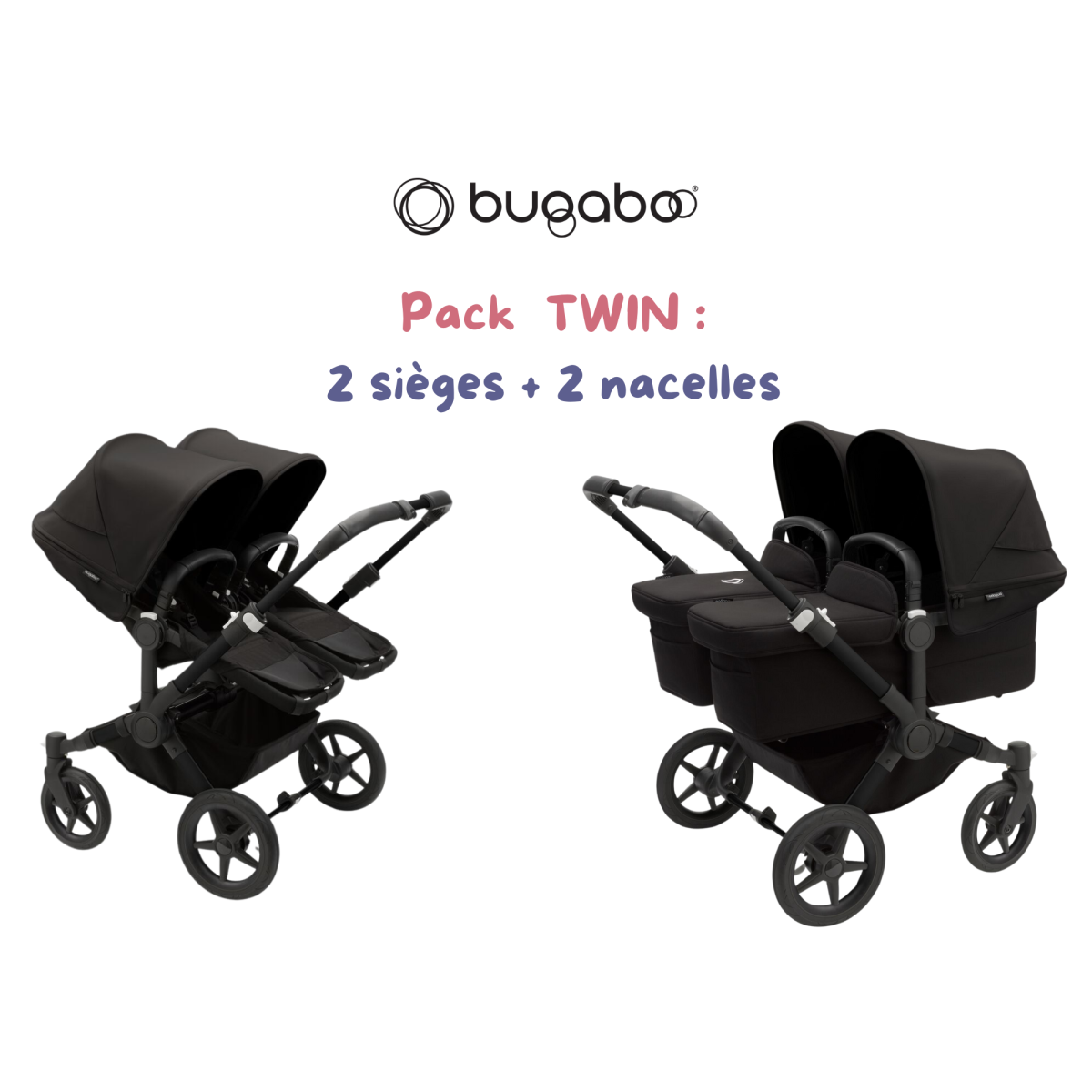 La Poussette Double BUGABOO Donkey 5 se distingue par sa capacité à évoluer avec votre famille, permettant ainsi de transporter vos jumeaux ou enfants rapprochés en toute sérénité.