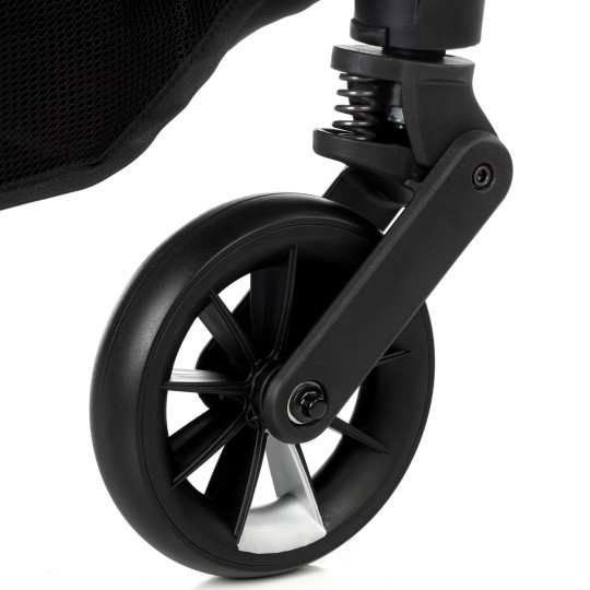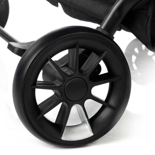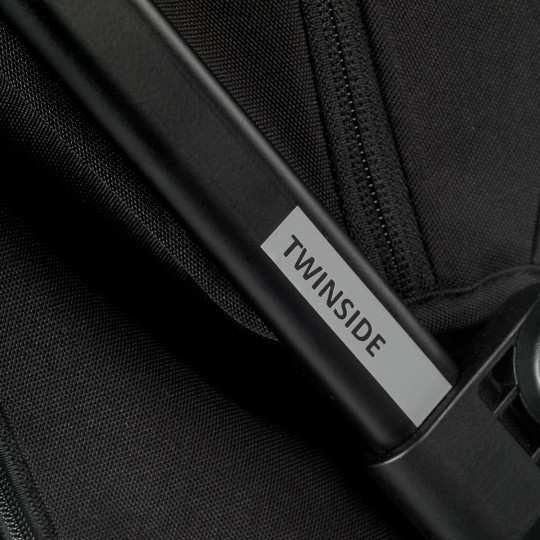 Équipée de suspensions sur les quatre roues, la Twinside assure une conduite fluide et confortable sur tous types de terrains. Son frein debout, accessible et sécurisé, permet de bloquer la poussette rapidement lors des arrêts.