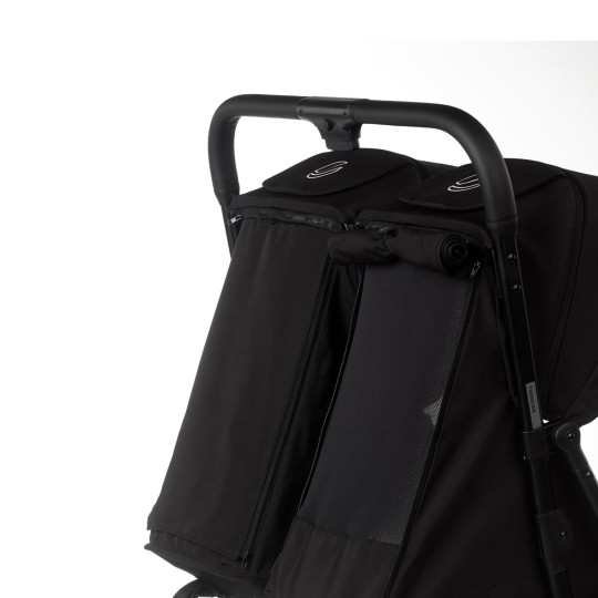 La poussette double Twinside a été conçue pour simplifier le quotidien des parents de jumeaux ou d’enfants d’âges rapprochés. Grâce à son pliage très compact à une main, elle se range facilement dans un coffre de voiture et se transporte sans effort, même dans les espaces réduits.
