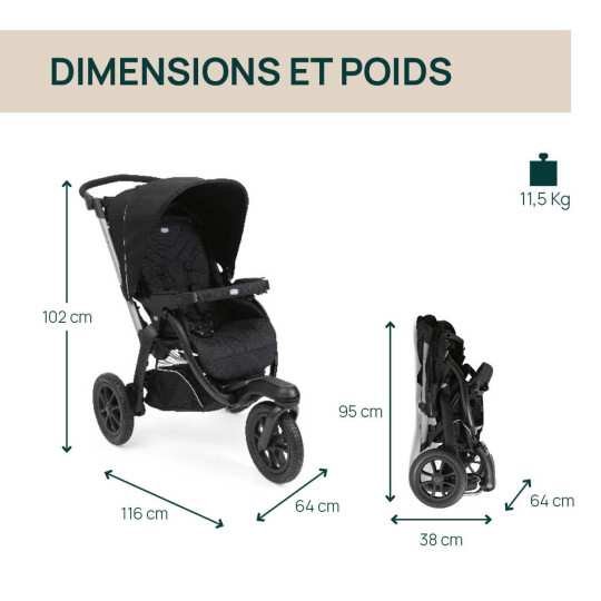 La Chicco Activ3+ est une poussette 3 roues au look dynamique et élégant, idéale pour les parents qui aiment bouger et partager leur mode de vie actif avec bébé.