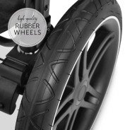 Enfin, ses trois roues en caoutchouc avec suspensions, dont une roue avant pivotante et verrouillable, assurent une conduite fluide et stable sur tous les types de terrains. Le canopy avec protection solaire UPF 50+ vient compléter l’ensemble pour protéger bébé lors des journées ensoleillées.