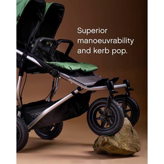 La poussette double Mountain Buggy V4 Duet™ est la solution ultime pour les familles actives : maniable comme une simple, robuste comme une tout-terrain, et prête à vous accompagner de la naissance à 4 ans (≈ 18 kg par assise). Grâce à sa largeur compacte et son châssis en aluminium léger, elle traverse portes, trottoirs et sentiers avec une agilité remarquable.