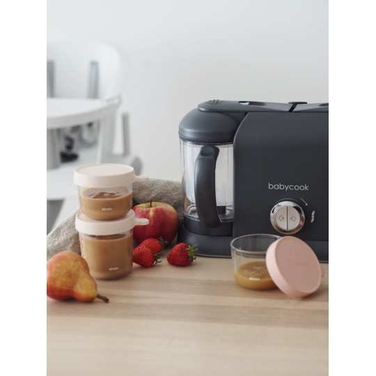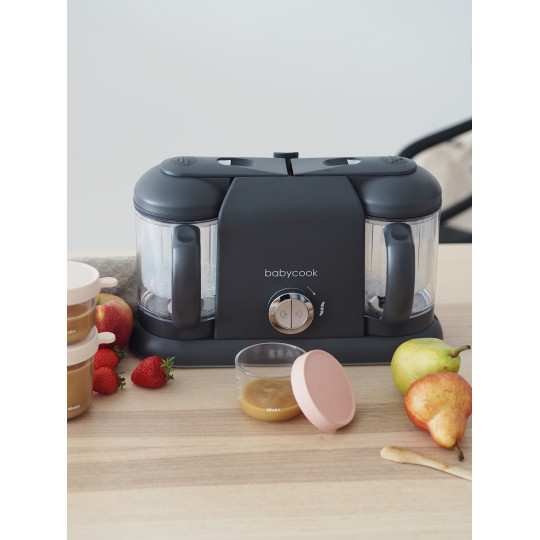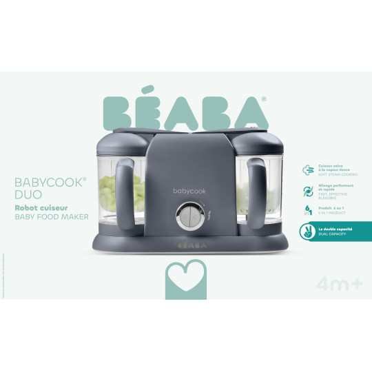 Robot cuiseur bébé grande capacité Babycook Duo Gris Foncé Béaba pour préparer des petits pots salés et sucrés rapidement et facilement