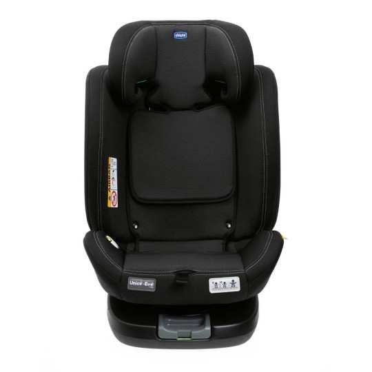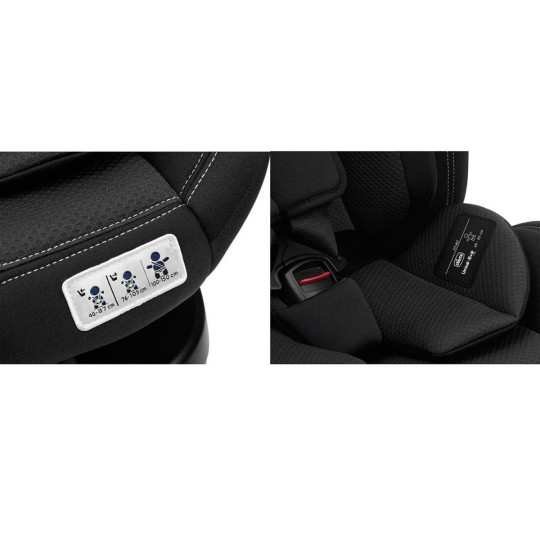 Unico Evo i-Size est équipé d'étiquettes "Fit-Kit" : des étiquettes simples et claires qui aident à rappeler la plage d'utilisation du siège-auto (40-150 cm) et du réducteur (40-60 cm), le sens de déplacement (dos à la route et face à la route) et le système de retenue de l'enfant (système de harnais à 5 points jusqu'à 105 cm/18 kg max ; avec la ceinture du véhicule de 100 à 150 cm).